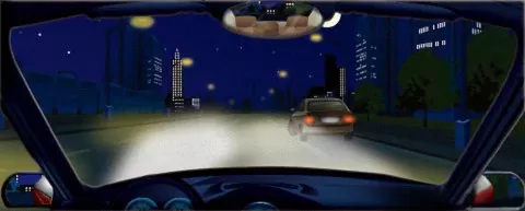 74. 在图中这种环境超车时,要先变换远近光灯告知前车,待前车让行后,开启远光灯超越。