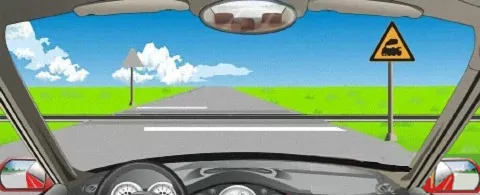 74. 蓝色车辆遇到图中的情形时,下列做法正确的是?