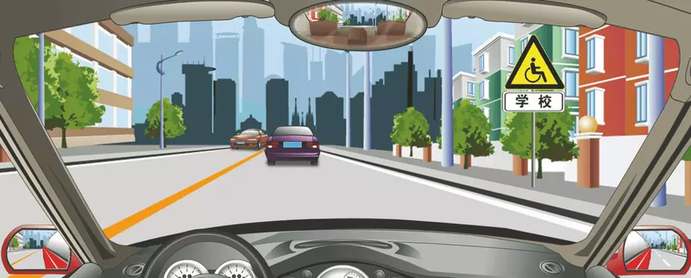 16. 驾驶机动车看到路边有这种标志时怎样行驶?