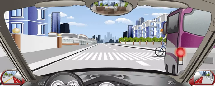 19. 如图所示,驾驶机动车遇到非机动车占道行驶时,以下做法正确的是什么?