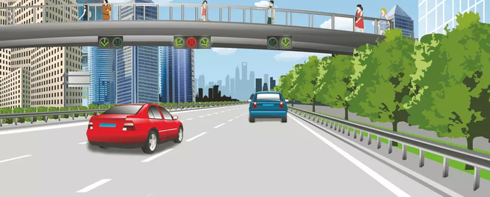 39. 驾驶机动车进入减速车道后,应平顺减速,避免猛烈制动,同时注意保持与前车车距。