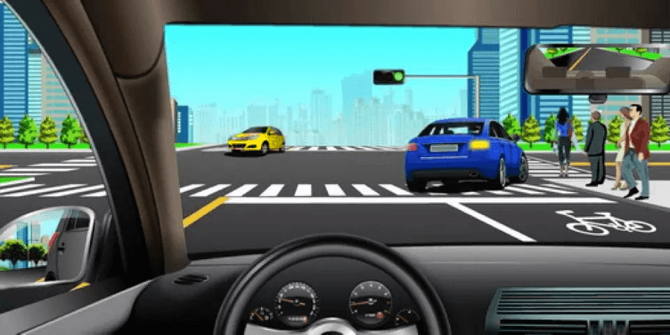 12. 如图所示,本车欲超越右侧车辆时,在确保安全的前提下,应该尽快超越,减少并行时间。