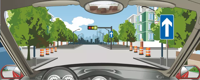 30. 该车道路面导向箭头指示前方路口可左转弯或掉头。