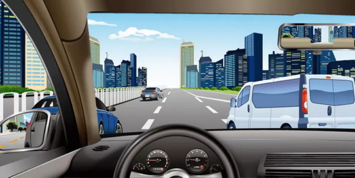71. 如果想超越前方图中这辆慢速度行驶的小客车,怎样做是正确的?