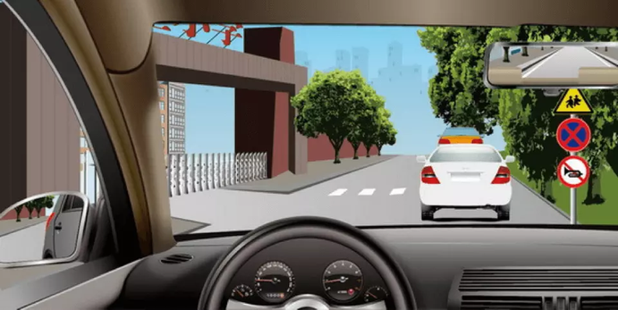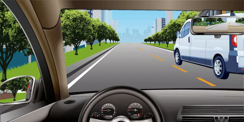 13. 如图所示,本车欲超越右侧车辆时,在确保安全的前提下,应该尽快超越,减少并行时间。