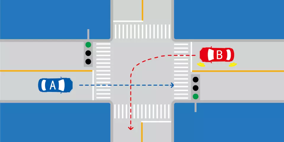 98. 在有方向指示信号灯并设置左转弯待转区的交叉路口,同方向直行信号灯亮灯时,左转弯车辆应当按规定依次进入待转区停车等候。