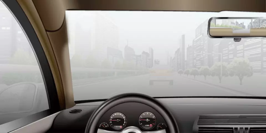 29. 如图所示,雾天驾驶机动车行驶,旁边车道无车时,可变更车道,快速超越前车。