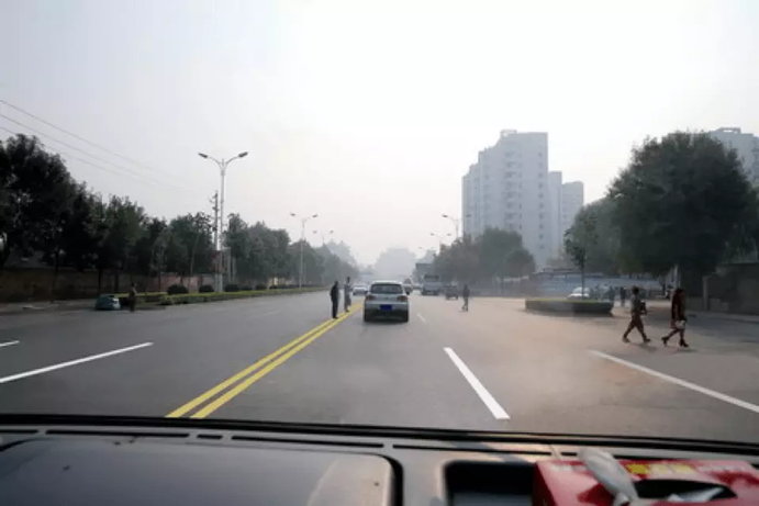 如图所示,驾驶机动车遇到这种情况时,应注意左前方行人可能在前方机动车驶过后马上横穿道路。