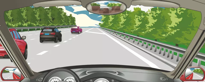 驾驶机动车进入减速车道后,应平顺减速,避免猛烈制动,同时注意保持与前车车距。