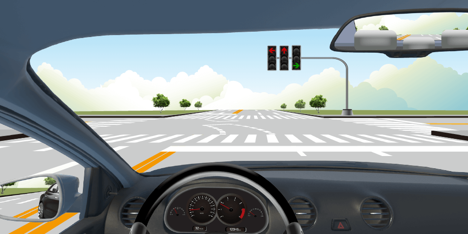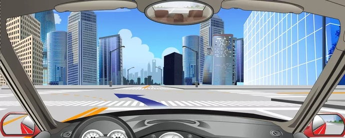 如下图,路口导向线用于辅助车辆转弯行驶。