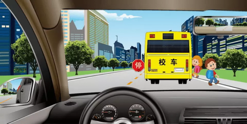 如图所示,驾驶机动车遇到校车停车上下学生时,以下做法正确的是什么?