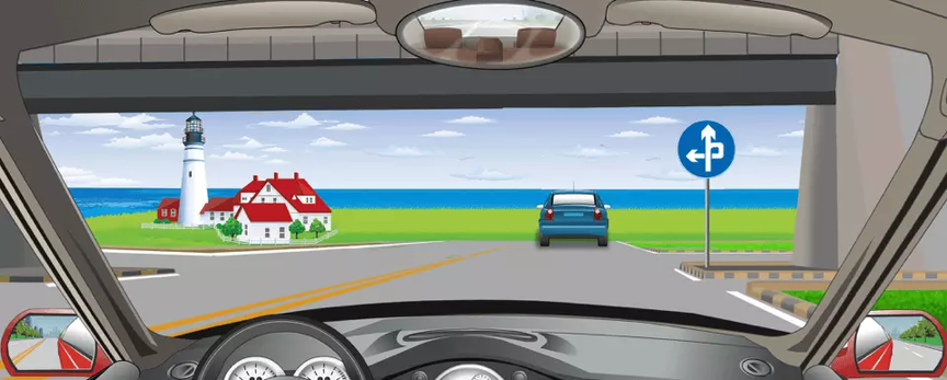 这个标志表示前方立体交叉处可以直行和右转弯。
