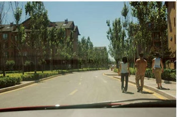 在社区道路行车,遇到前方行人占道行走时如图所示,教练员应提示学员( )。